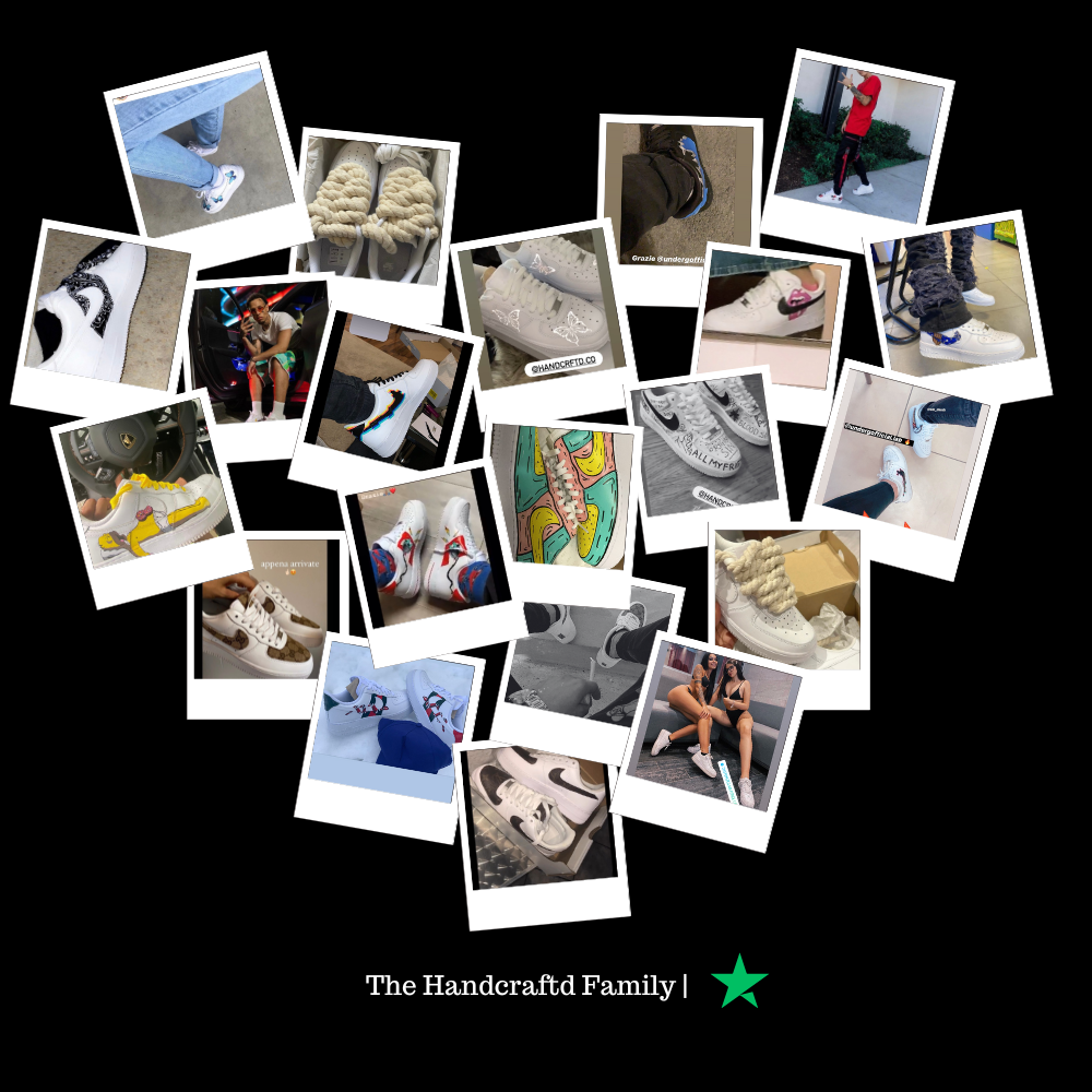 👟 Sie erwerben ein Originalprodukt (Turnschuhe, Kleidung oder Accessoires), das von unseren Künstlern von Hand angepasst wurde, wobei die Originaletiketten und -bestandteile der Basismarke erhalten bleiben. Jeder Artikel wird aus einem authentischen Stück hergestellt, auf das ein exklusives, vom HANDCRAFTD®-Team entwickeltes Design aufgebracht wird.