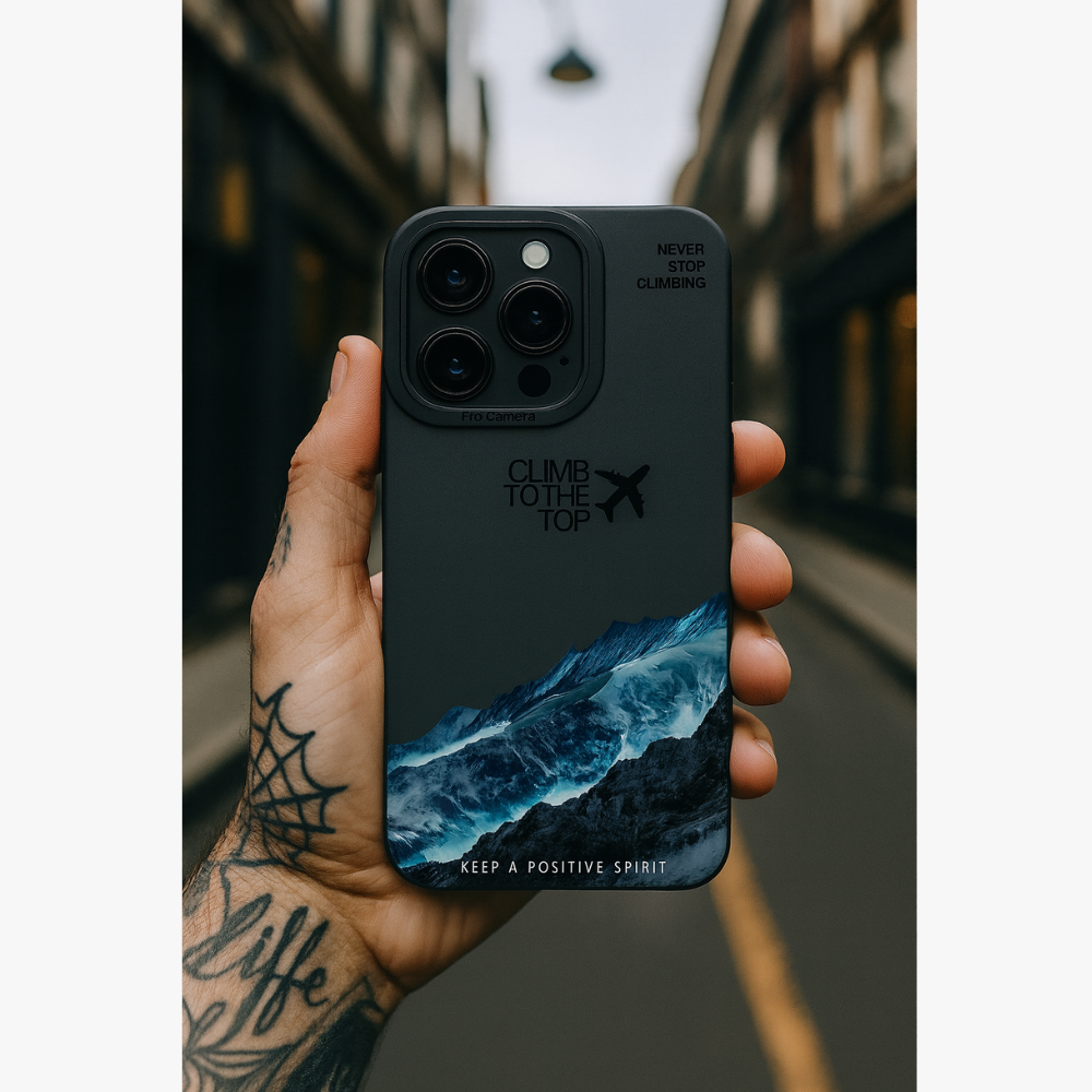 La Summit Spirit Case Está pensada para quienes siempre miran hacia adelante, hacia nuevos retos y nuevas cimas. La imagen de las montañas iluminadas por el hielo crea un intenso contraste sobre el fondo oscuro, mientras que las letras minimalistas añaden un toque motivador discreto pero potente. Elegante y decidida, esta funda convierte tu iPhone en un recordatorio diario: Nunca dejes de subir.