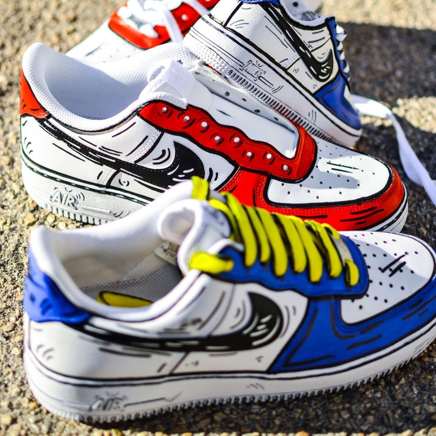 Una reinterpretazione artistica delle classiche Air Force 1 in stile cartoon.