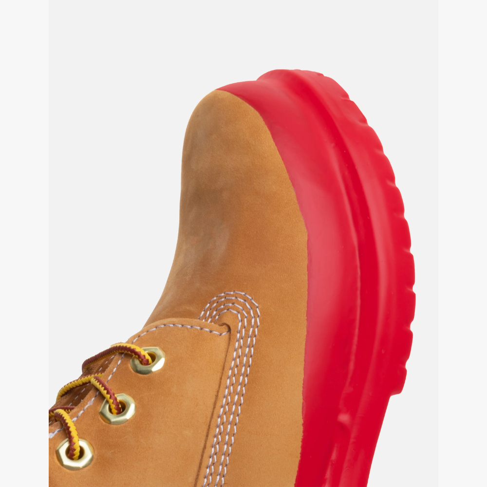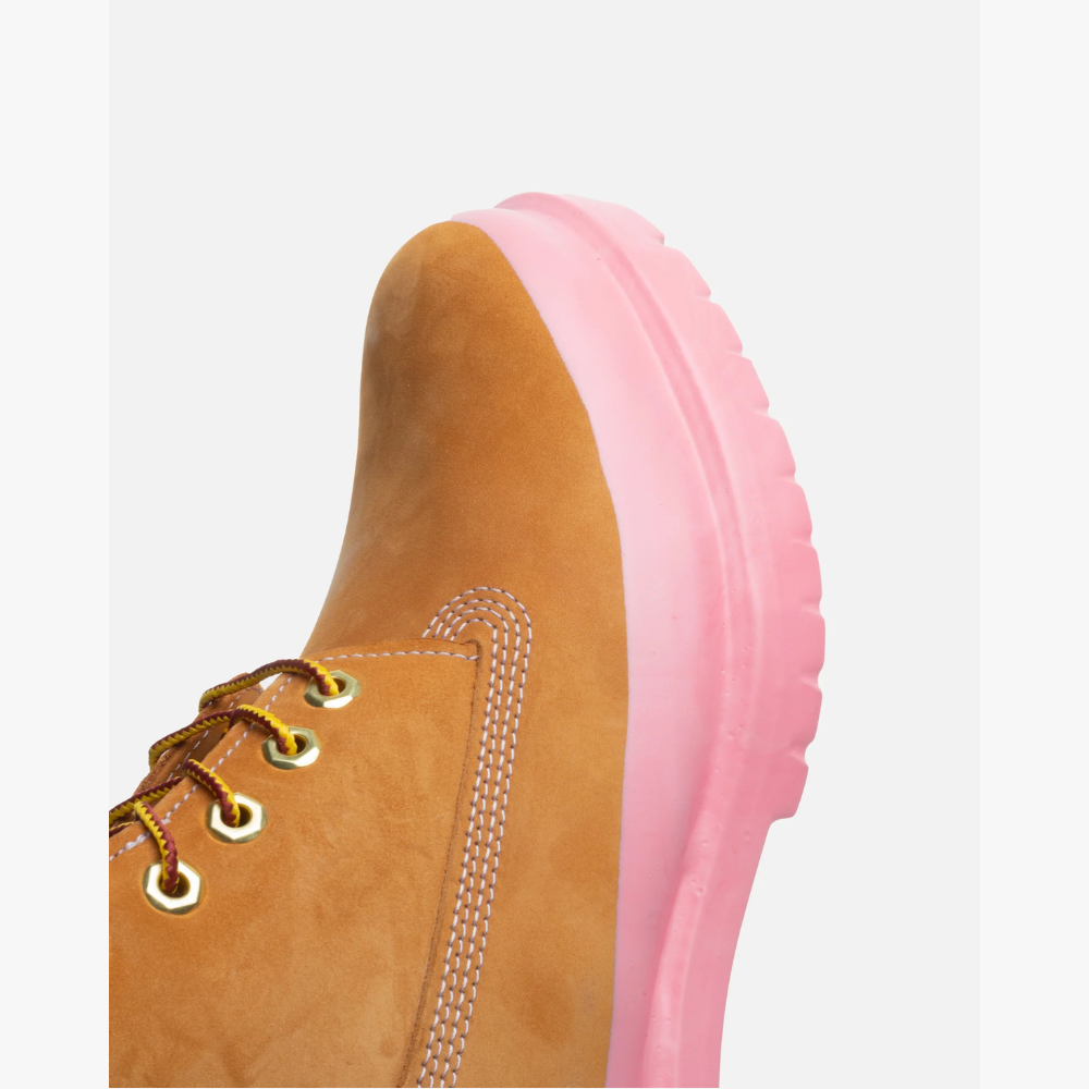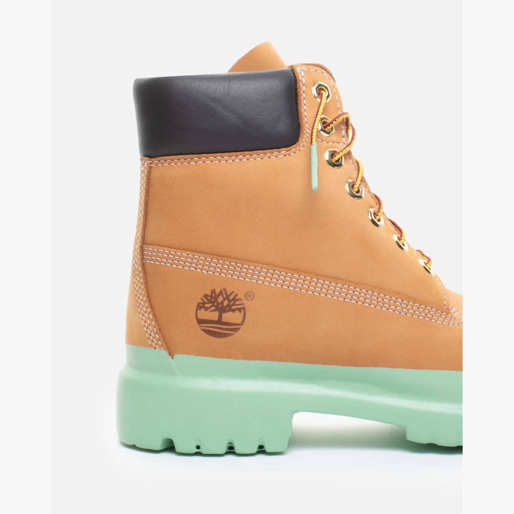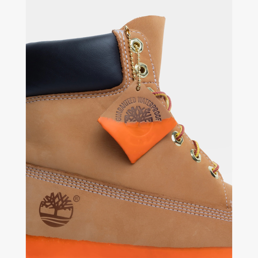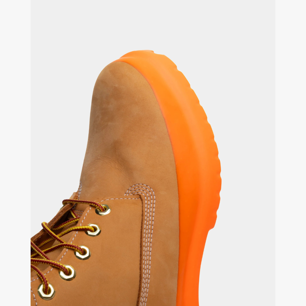 La Rubberized Icon Timbs Brown Gum reinterpreta il classico stivale Timberland con un’estetica moderna e audace. La tomaia in nubuck premium color wheat mantiene tutta l’identità iconica del modello originale, con cuciture robuste, collo imbottito nero e occhielli metallici dorati. Il carattere della scarpa, però, è definito dalla suola gommata oversize in un vivace arancione brillante, colata come un blocco unico per creare un effetto “rubberized” che trasforma lo stivale in un pezzo di design contemporaneo. Disponibile in varie colorazioni.